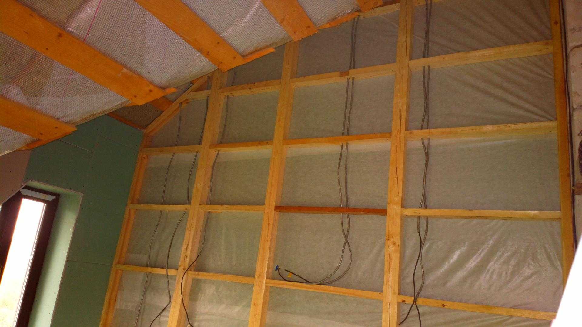 Монтаж каркасного основания и гипсокартона в деревянном доме