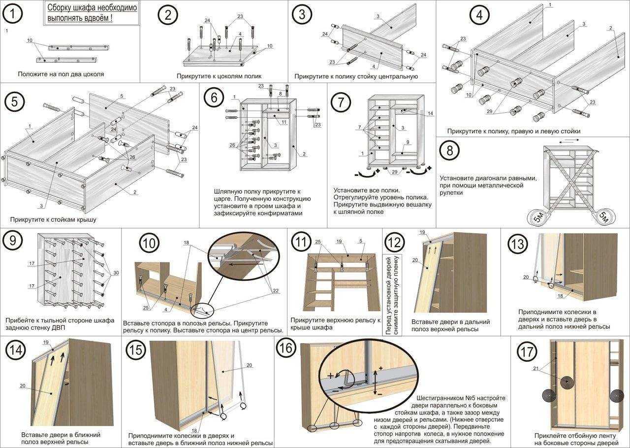 Пошаговая инструкция сборки дверей для шкафа купе