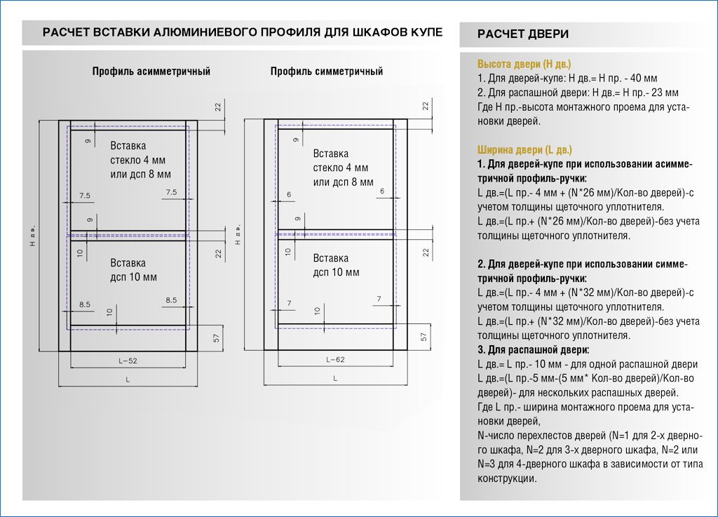 Правильно сделать расчёт дверей шкафа купе поможет наше руководство с калькулятором.