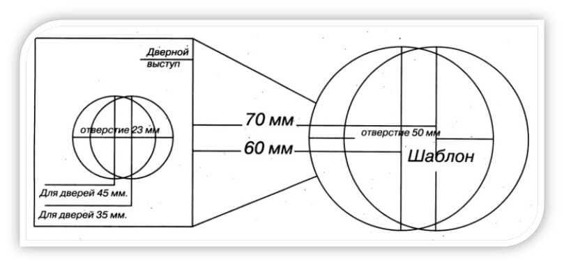При покупке такого типа замка с ним в комплекте всегда идет шаблон для точной разметки расположения отверстий. Цилиндровый механизм замка у разных производителей может отличаться диаметром, поэтому приобретайте коронку по дереву после покупки замка. Если в Вашем комплекте замка не оказалось шаблона, можете распечатать их с этой статьи как картинки и использовать при установке замка.