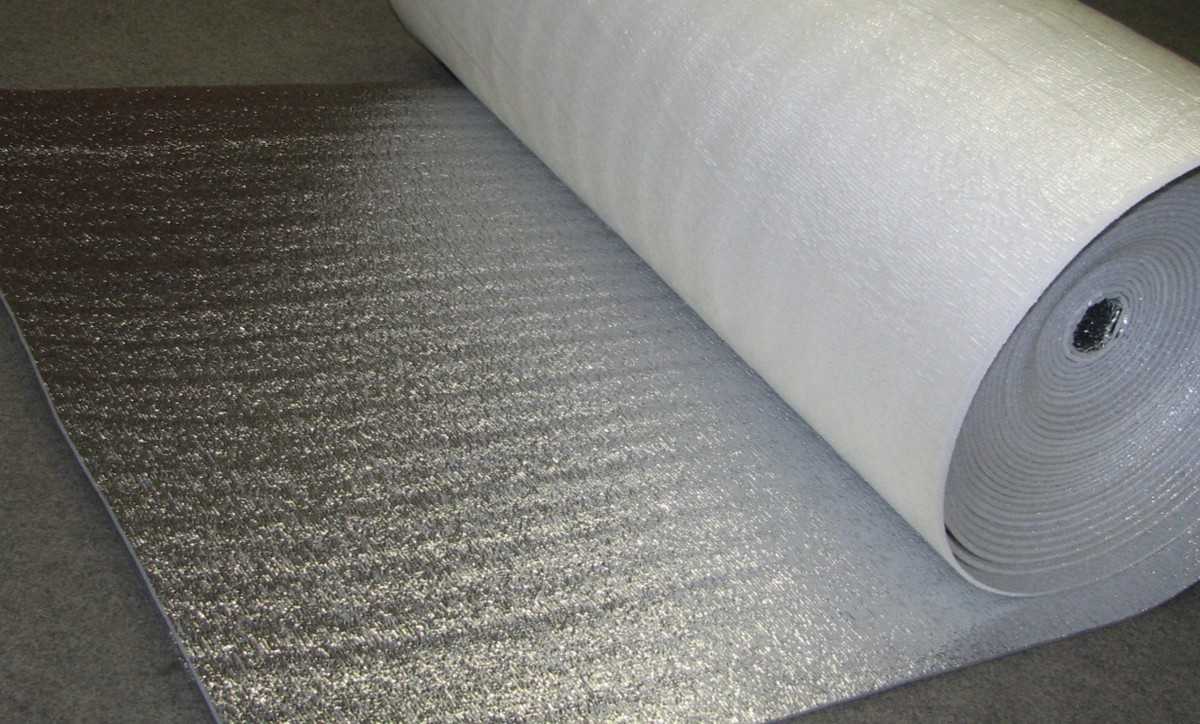 Многофункциональный утеплитель, сочетает в себе вспененный полиэтилен и слой металлической фольги. Этот материал обычно монтируют на бетонный балконный потолок — из-за гибкости уложить плотную фольгу под кровлю проблематично. Используется чаще всего как промежуточный влагоустойчивый утеплительный слой.