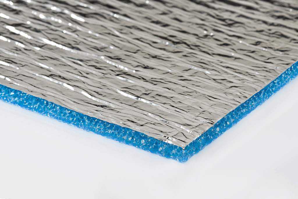 Кроме обычной подложки из пенополистирола, на рынке представлены двухслойные изделия с фольгой из алюминия. Монтаж их практически не отличается от обычного материала, за исключением того, что необходимо следить за тем, чтобы фольга всегда была сверху.