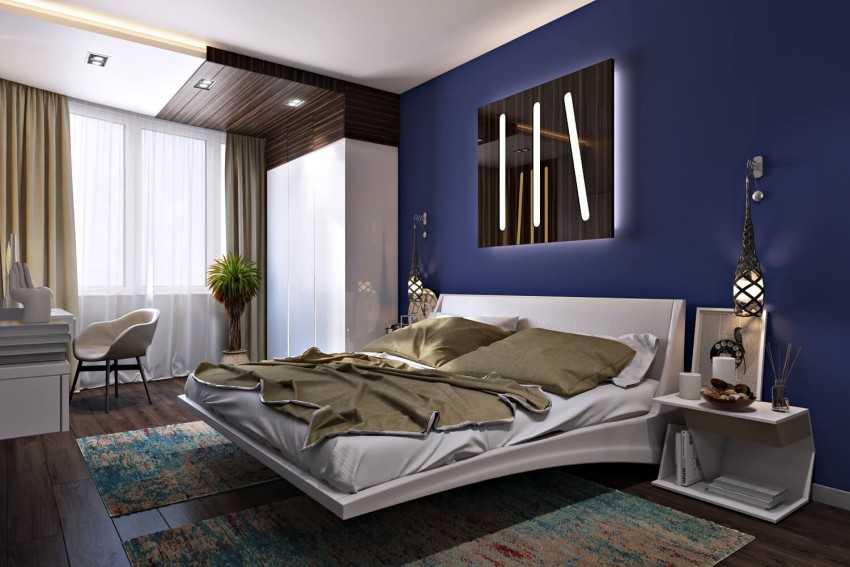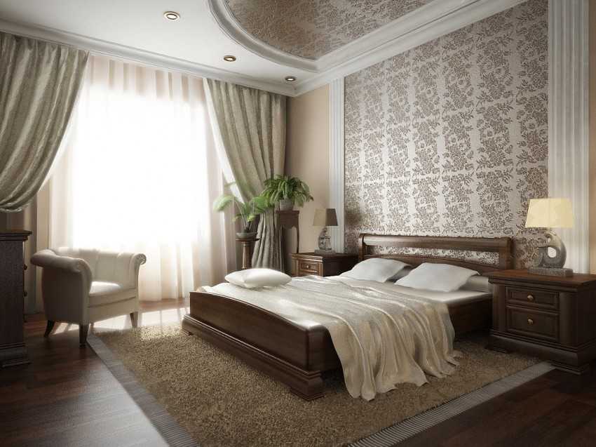 Не считая дерева, самым экологичным материалом для любого помещения, а не только для спальни, будет керамическая плитка, ведь она выпускается не только для ванн и кухонь, но и для жилых интерьеров. Да, это холодный материал, но положение поправит прикроватный ковёр.