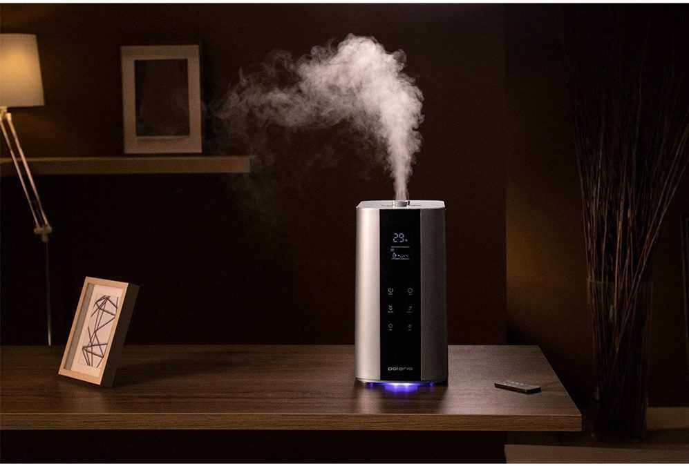 Плюсы и минусы. Его основной плюс – он увлажняет помещение теплым паром, который не снижает температуру в квартире, одновременно обезвреживая бактерии. Среди минусов – работа паровой станции в более шумном режиме (слышно бульканье воды).