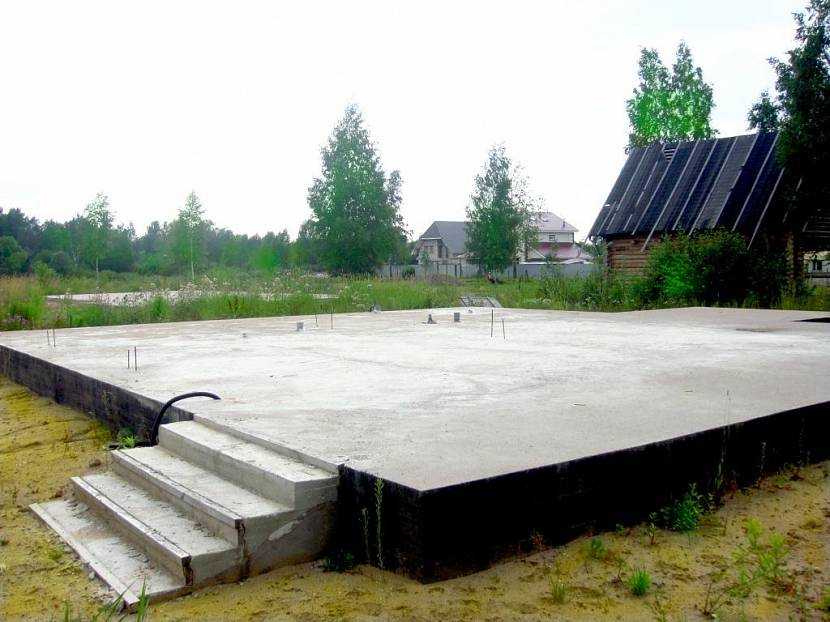 Плитный фундамент с битумным покрытием под кирпичный домИсточник domyou.ru
