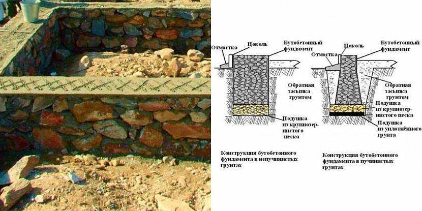 Устройство бутобетонного фундамента на пучинистых и непучинистых почвахИсточник hozsektor.ru