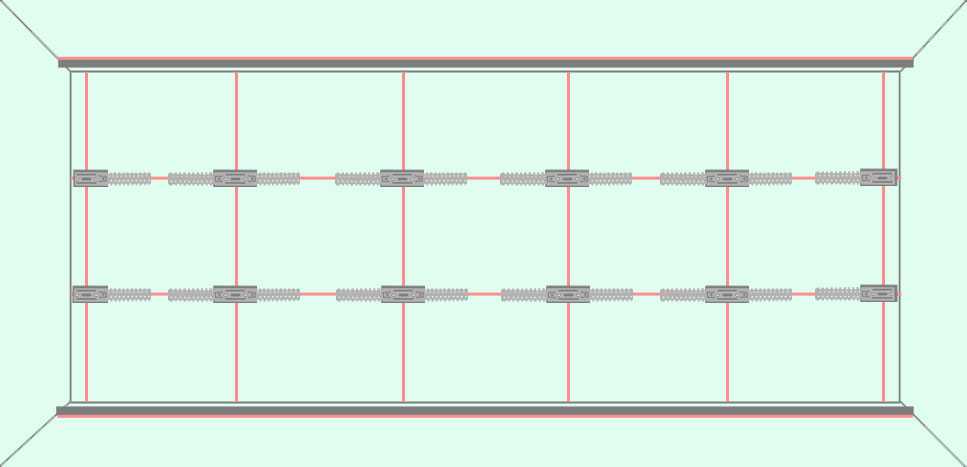 - 4. Последним шагом будет монтаж поперечных планок. По технологии они устанавливаются примерно на уровне метра от пола, хотя ничего не мешает установить дополнительные ребра жесткости. Чтобы еще больше увеличить прочность конструкции, можно каждую поперечину усилить установкой прямого подвеса.