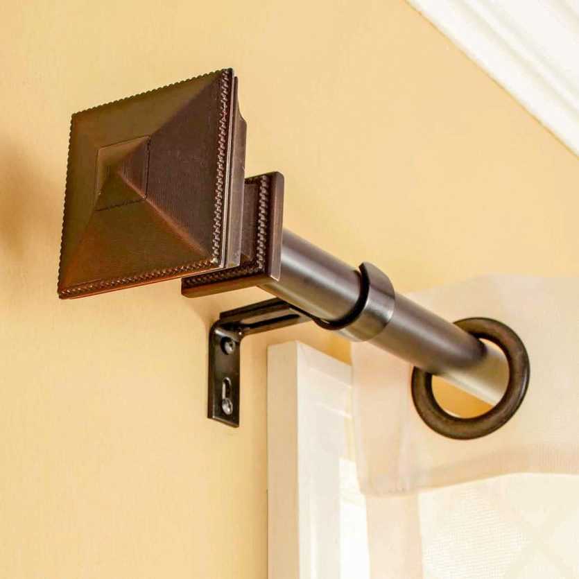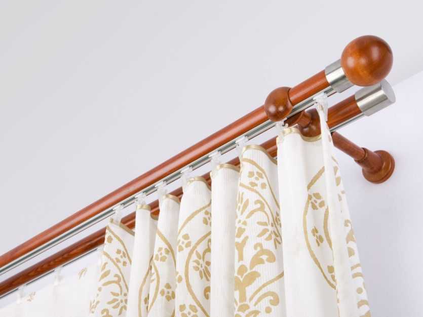 Материал изготовления. Выбирать материал следует, учитывая вес шторок, стиль комнаты, личные предпочтения, финансовый бюджет. Самыми дорогими являются кованые изделия. Дерево также отличается высокой ценой, требует дополнительных крепежных элементов. Доступными моделями являются пластиковые. Однако на них нельзя вешать слишком тяжелые шторы.