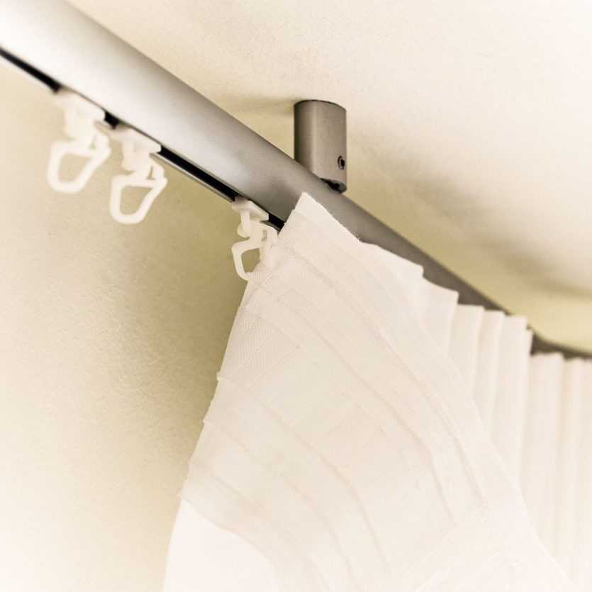Потолочный же крепится к потолку, и нужно не забывать, что занавеска должна быть от подоконника на расстоянии не меньше 5 см. Такие карнизы намного сложнее прикрепить, чем стенные.