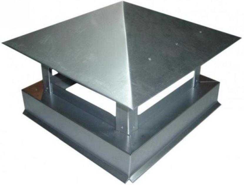 - Плоский дымник монтируется на кровле здания, оформленного в стиле минимализм. Наклон в такой конструкции отсутствует, что приводит к скоплению снега. Большая нагрузка на подставку приведет к их деформации.