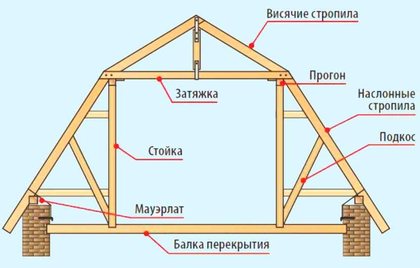 Стропильная система — несущий каркас кровли. Он состоит из элементов:
