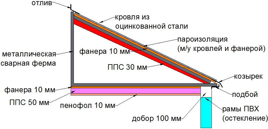 Рис. 14. Схема монтажа и утепления крыши балкона.