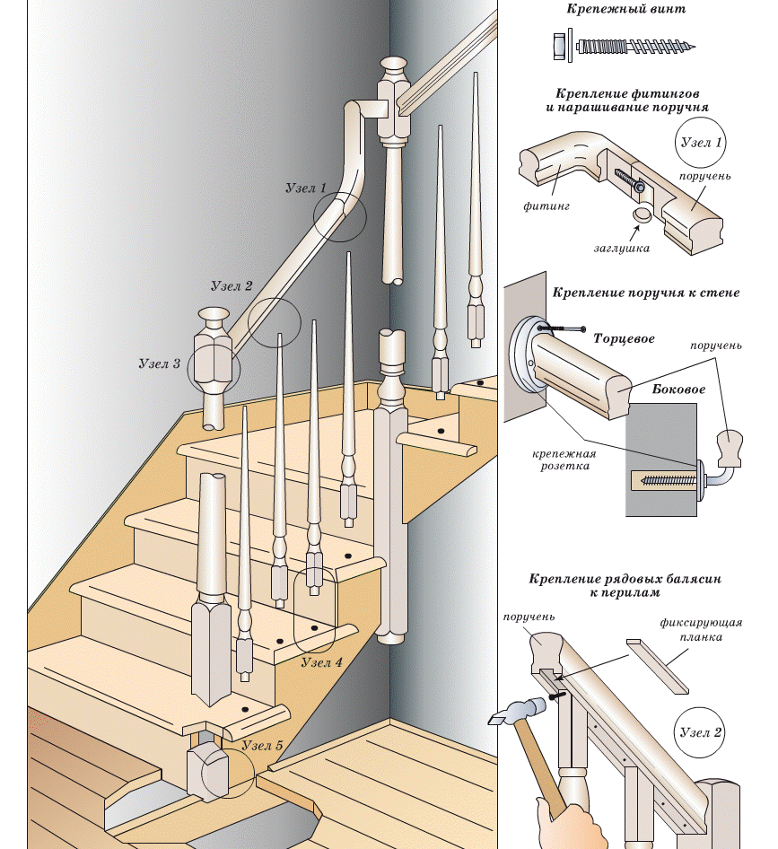 Монтаж ступеней и перил при изготовлении деревянных лестниц своими руками