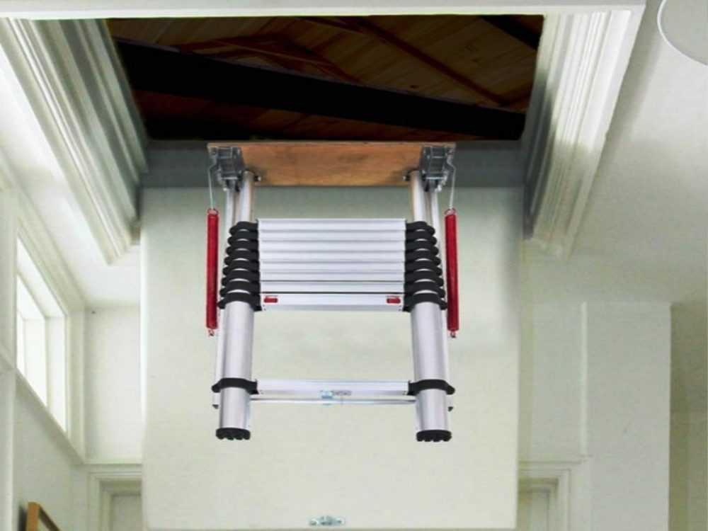 Простая конструкция алюминиевой телескопической чердачной лестницы позволяет раскладывать и убирать ее без особых проблем и энергозатрат. Материал необычайно легок, но может оказаться и довольно хрупким. Она не подходит для частого использования.
