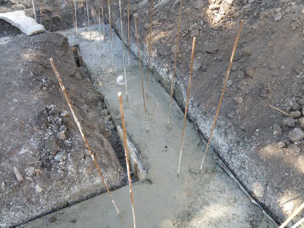Иногда в целях экономии, на хороших грунтах котлован под фундамент роют ровно по разметке — на нужную ширину и глубину. И в эти ямы заливают бетон без опалубки. Такая технология не может гарантировать требуемую степень надежности, результат спрогнозировать невозможно. Дело в том, что для набора нормальной прочности бетону необходимо определенное количество воды. Без опалубки вода хоть и немного, но впитывается в грунт, что может сказаться на качестве самого бетонного камня. В самом худшем случае он может крошится.