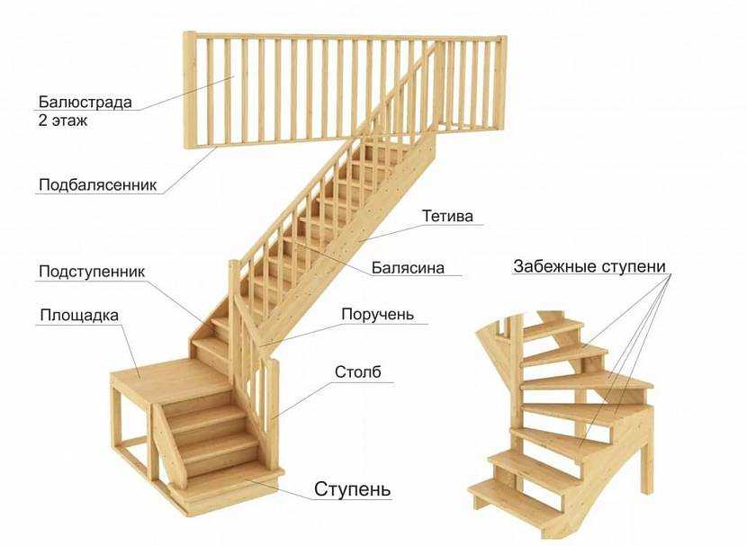 В большинстве конструкций также присутствует забежная ступень. Она представляет собой угловой поворотный элемент. Устанавливается тогда, когда отсутствует переходная площадка. Иногда эти детали сооружаются в одной комбинации.
