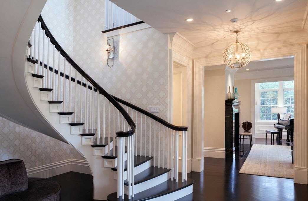 Классика. Этот стиль характеризуется светлыми стенами, добротной мебелью из массива дерева. Узор на перилах должен быть эксклюзивным и соответствовать классическим канонам: рисунок в виде виноградной лозы, цветов, листьев лавра. Красиво смотрится имитация колонн на балясинах и начальном столбе.