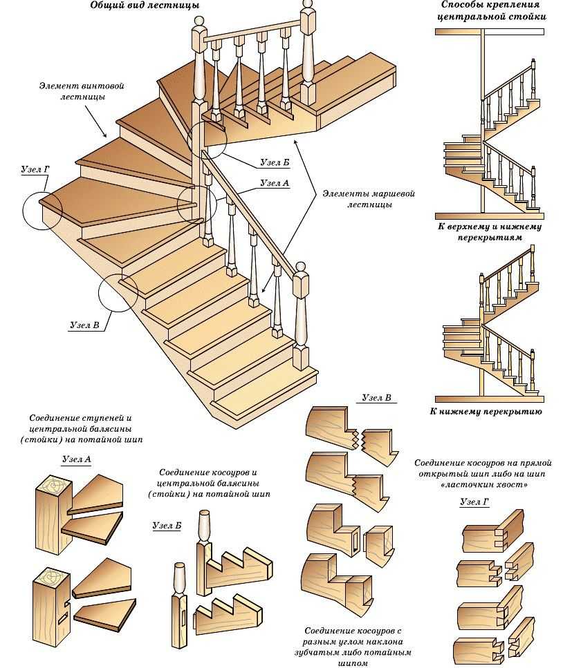 | Важные компоненты лестничной конструкции | Из чего могут состоять (варианты) |
