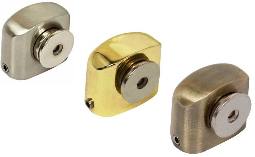 Магнитные защёлки бесшумны, просты в монтаже, надёжно фиксируют дверное полотно в закрытом положении, а для открывания двери нужно приложить незначительное усилие без поворота ручки.
