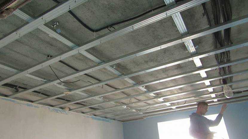 Металлические каркасы используются с подвесными конструкциями — например, гипсокартонными.