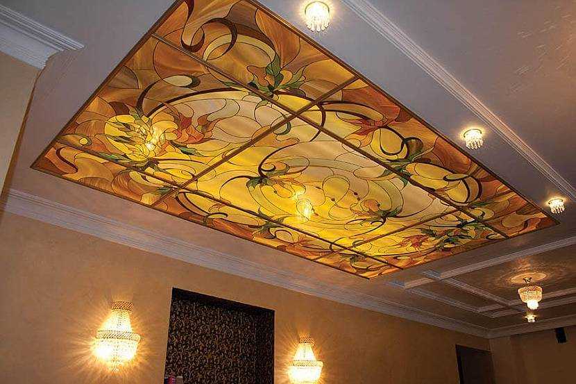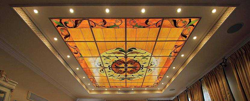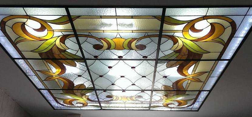 Разновидности и техники витражного потолка