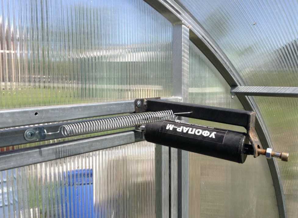 - Шаг 5. Монтируют термопривод на стороне парника, которая является противоположной открываемому проему. Перепутать устройство с доводчиком трудно: последний короче;