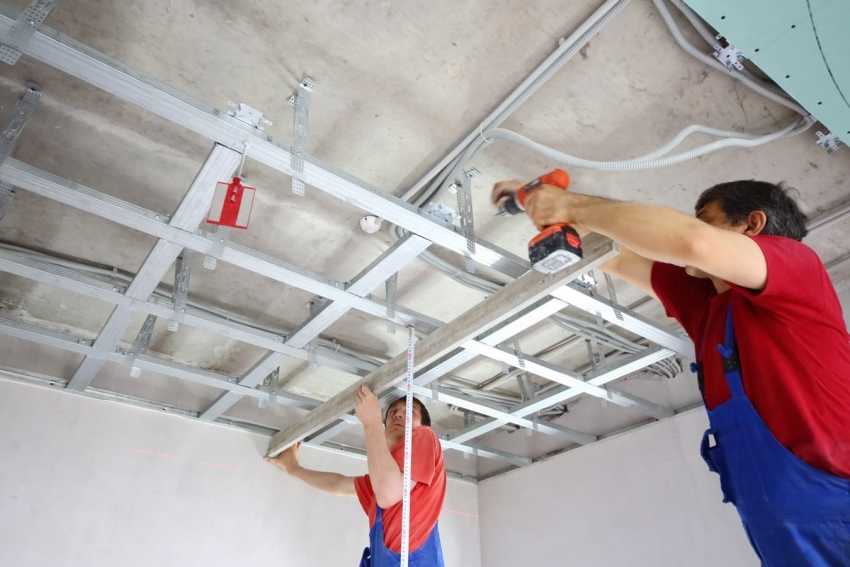 Существует несколько разновидностей подвесных потолков, которые различаются по материалу. К ним относят гипсокартонные, минеральные полотна, деревянные, пластиковые и другие. Они монтируются на потолочный металлический профиль. Каркас делается прочным, чтобы мог выдержать массу покрытия и светильников.
