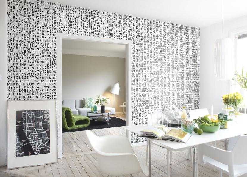 Применение в интерьере обоев, которые идут с буквами либо же текстом