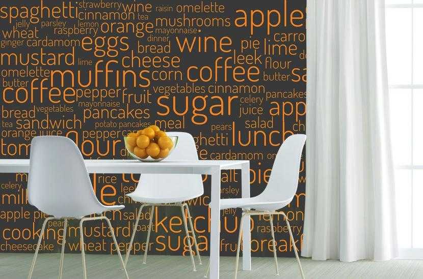 В ассортименте многих магазинов с обоями вы легко подберете обои для кухни. Они также бывают тематическими: с надписями на разных языках, различными шрифтами и даже с иероглифами на чайные/ кофейные темы. Это выглядит атмосферно, но не стоит клеить их рядом с кухонной плитой, так как они быстро придут в негодность. Или же сразу выбирайте моющиеся обои, чтобы можно было без вреда удалить с них грязь и остатки жира, нагара.