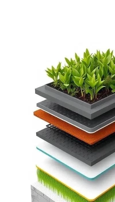 Финишные покрытия включают синтетические материалы, например, синтетический газон, который разнообразит дизайн. Однако неграмотная установка синтетических покрытий может привести к потере герметичности на стыках. Для экстенсивных зеленых кровель применяют дренажные системы, выполняющие функции разделительного слоя, дренажа и фильтрации. Развиваются «умные материалы» – покрытия с изменяемыми свойствами для регулирования теплоотражения.