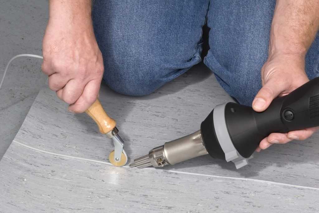 В технологии холодной сварки вместо горячего воздуха используется специальный состав. Практичный вариант незаменим для склеивания линолеума своими руками.