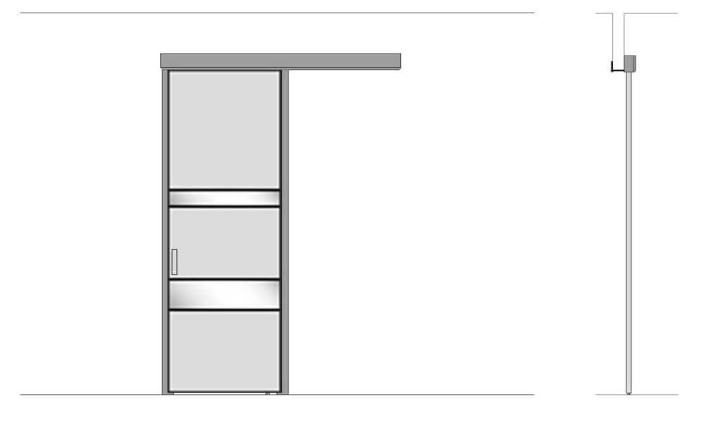 Данный установочный размер складывается из двух составляющих – это высота дверного полотна вместе с роликами включительно и зазор под дверью, составляющий 10-20мм (в зависимости от кривизны пола).