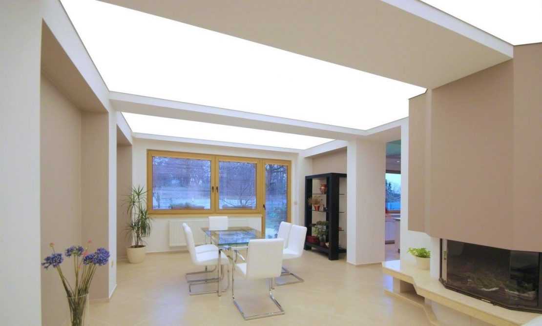 - Удаление колбы или излучающей поверхности от прозрачного натяжного потолка должно составлять не менее 20 см. С одной стороны, это обеспечивает предварительное рассеивание света за счет отражения от черновой поверхности, с другой стороны, блокируют эффект проецирования, например, как в случае использования цепочки светодиодов;