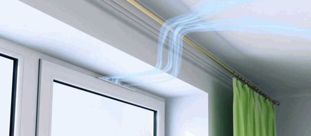 Наличие вентиляционных клапанов на окнах. Если в конструкции окна (обычно вверху) предусмотрены вентклапаны, то они также будут препятствовать запотеванию, поскольку поступающий через них прохладный воздух будет опускаться вниз, способствую поддержанию конвекции возле внутреннего стекла.