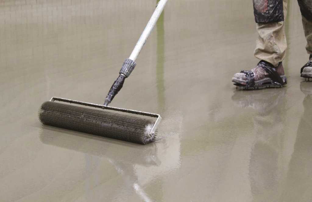 Защита основания специальной пропиткой – импрегнатом, при помощи валика или краскопульта. По возможности добавьте в пропитку кварцевый песок – чтобы она лучше схватывалась с наливным составом благодаря шероховатости.
