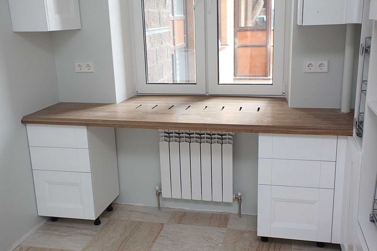 - Главное условие обустройства подоконника-столешницы любой конфигурации — вокруг радиатора должен свободно циркулировать воздух.