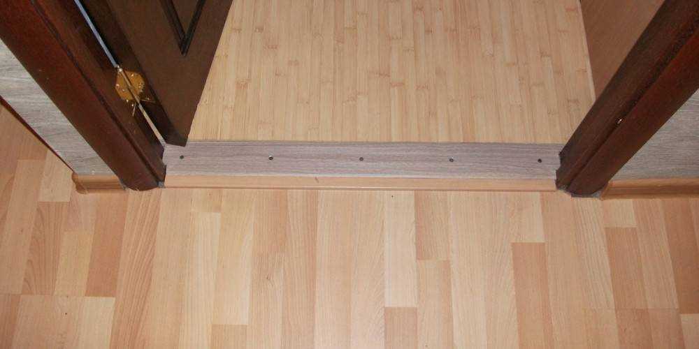 Второе, на что нужно обратить внимание, — материал порога. Если он будет укладываться между влажным и сухим помещением, то оптимально использовать алюминиевые, пластиковые или резиновые планки