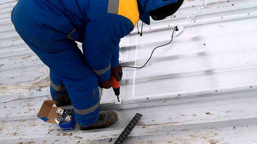 - На обрешетку укладывают соединительный профиль.