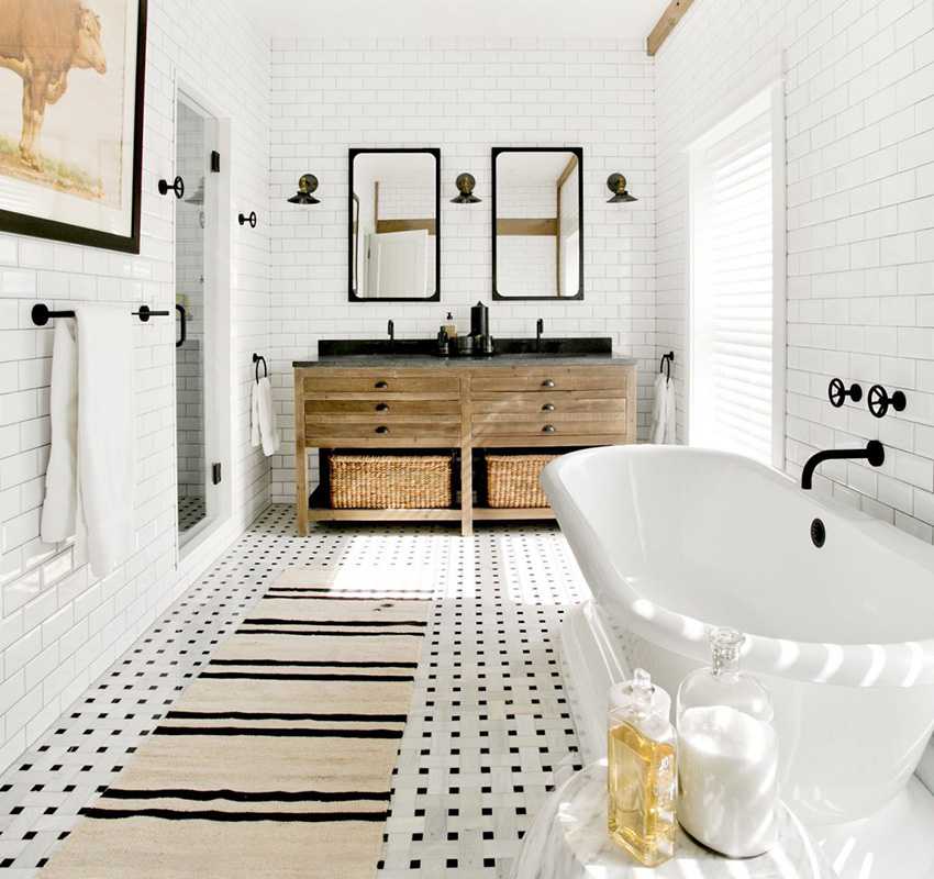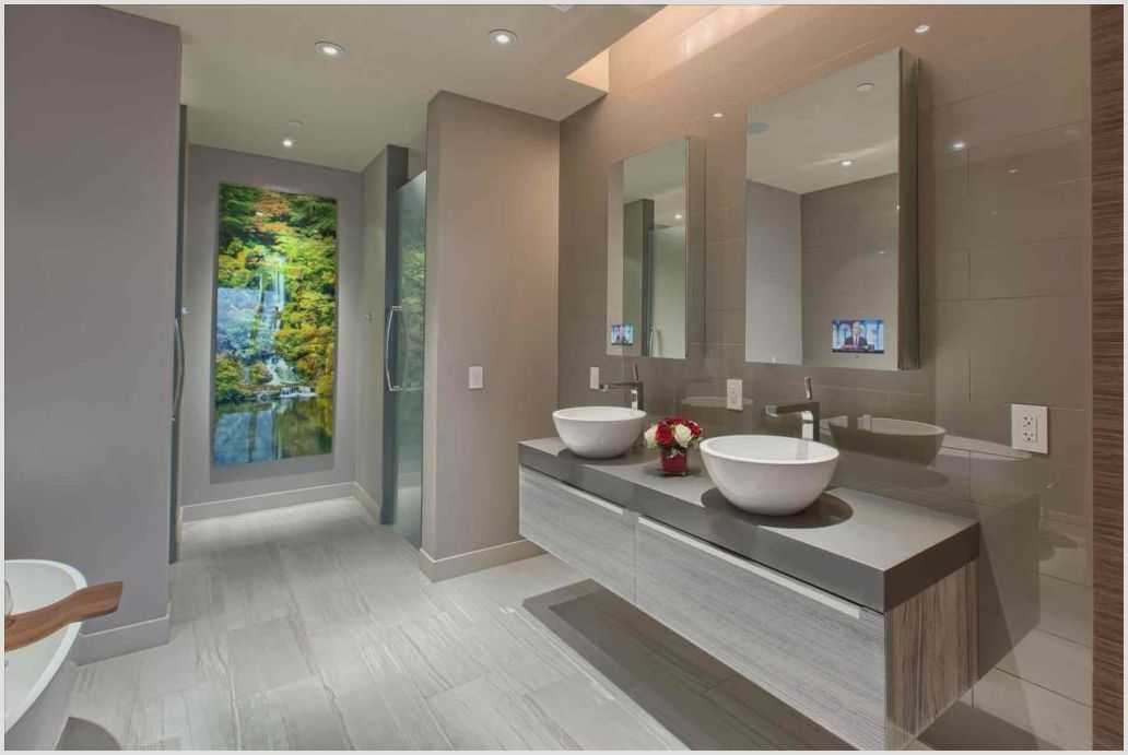 Отдельного внимания заслуживает решение об установке сдвоенной раковины. Это вполне приемлемый вариант для больших семей, в которых несколько членов собираются на работу/на учебу в одно и то же время.