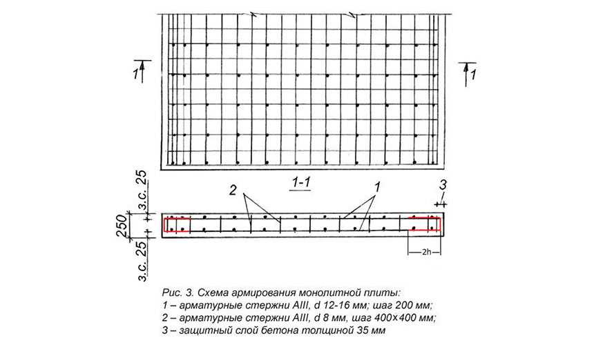 Схема армирования монолитной плиты фундамента