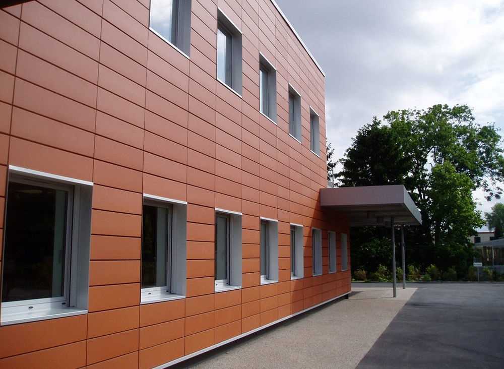 Внешняя декоративная оболочка вентфасада обеспечивает защиту нижних слоев от возможных механических повреждений