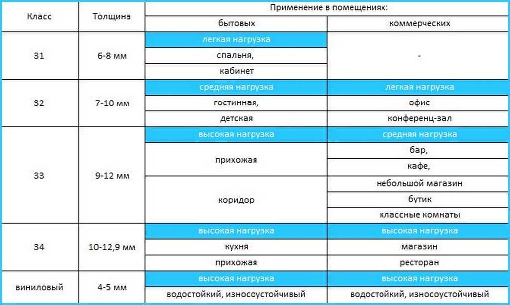 Современный рынок предлагает три самых распространенных класса данного вида ламинированного покрытия – 32, 33 и 34.