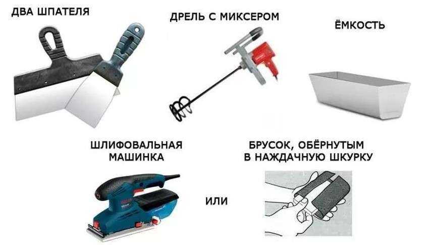 Для шпаклёвочных работ понадобятся следующие инструменты:
