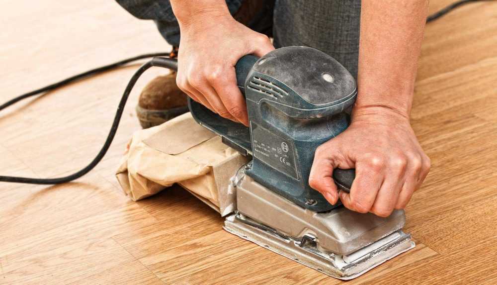Затем наждачку меняют на 80-тую и проходят по паркету еще раз. На этом этапе его поверхность шлифуется.