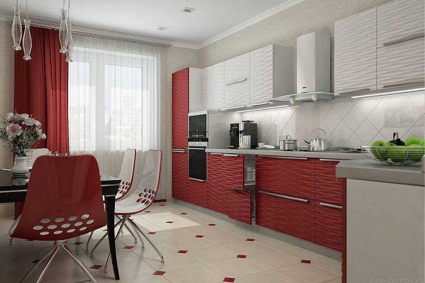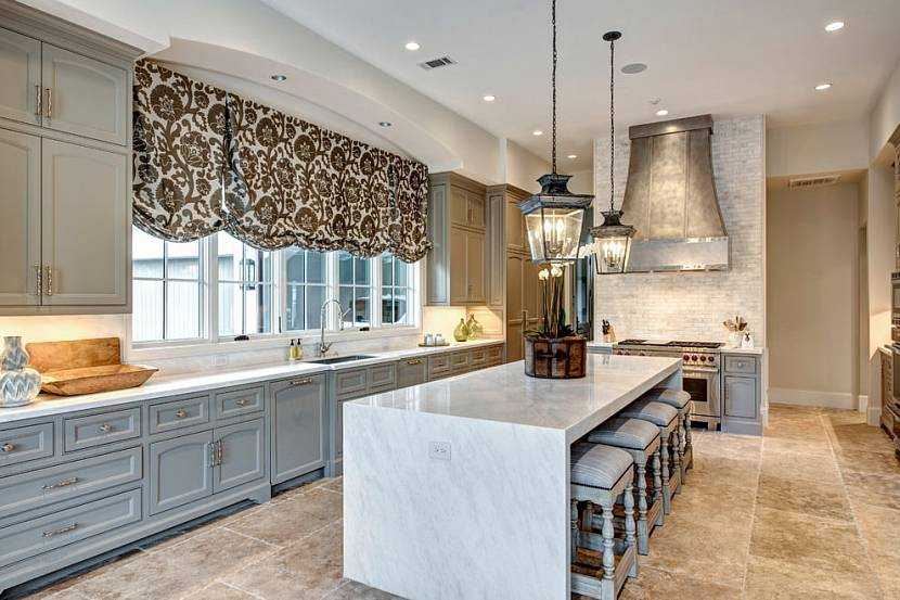 - для однообразной кухни уместно использовать в качестве узора на шторах большие рисунки и яркие цвета;