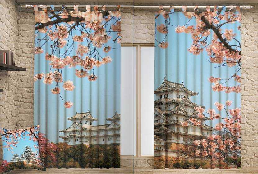 - Благодаря современным технологиям, на шторное полотно наносят фотопечать (2; 3 Д шторы). Вертикально расположенный рисунок визуально «поднимает» потолок. В зависимости от тематики изображения занавеси с фотопечатью, привносят то или иное настроение в интерьер, создают определённую атмосферу в помещении.