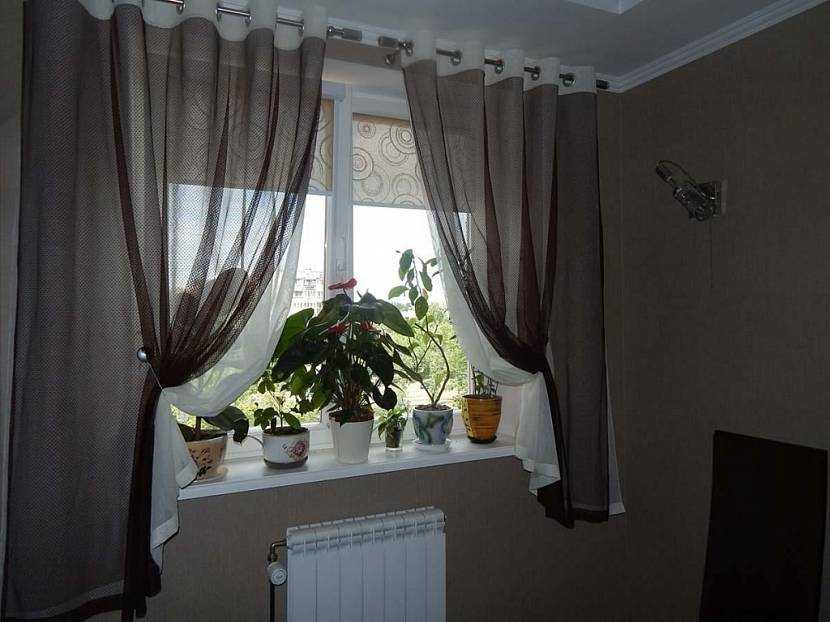 - для укороченных штор используется карниз, который меньше ширины окна на 2-3 см;