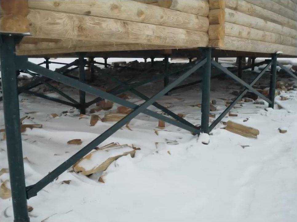 Сваи устанавливаются на глубину до 2,5 м, что обеспечивает повышенную надёжность и устойчивость основания дома.