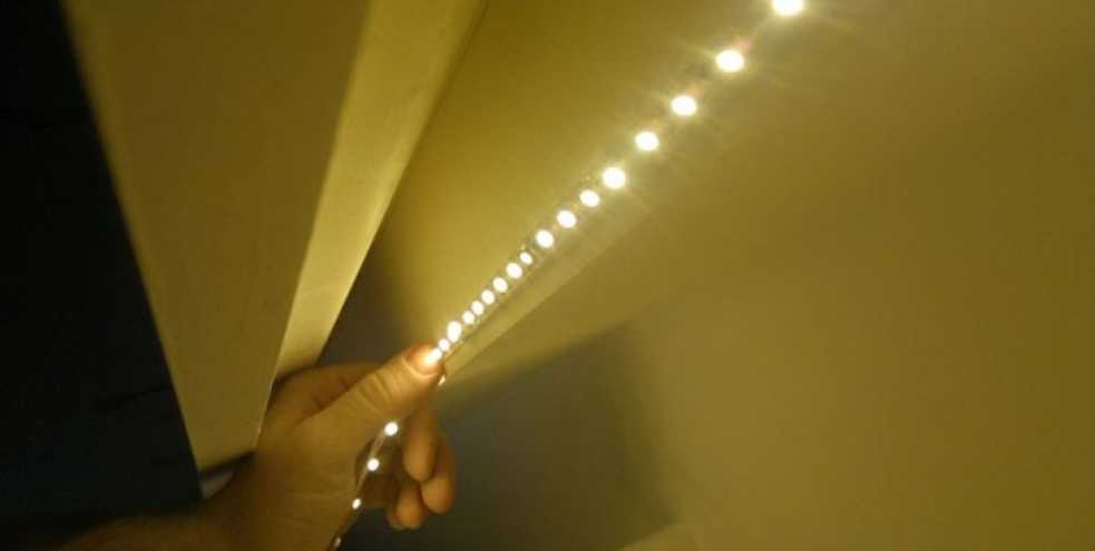 Устанавливая ленту, следите, чтобы светодиоды не привлекали внимание. Видимым должно быть только свечение.
