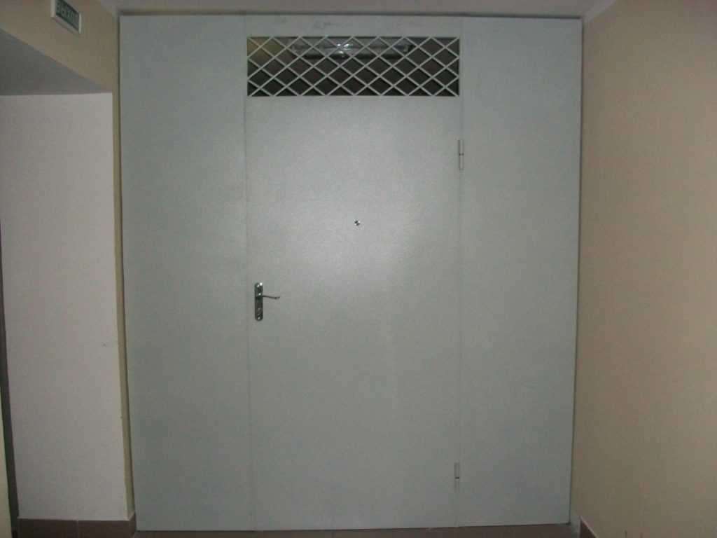 Двери с фрамугой (может быть либо съемной, либо приваренной к раме). Сама конструкция имеет стандартную высоту в 2050 мм, а фрамуга устанавливается сверху, между полотном и потолком. Такой вариант идеально подойдет в том случае, если проем по ширине небольшой, но высокий. Такой тип двери устанавливается не только на лестничной площадке, но и на входе в подъезд.